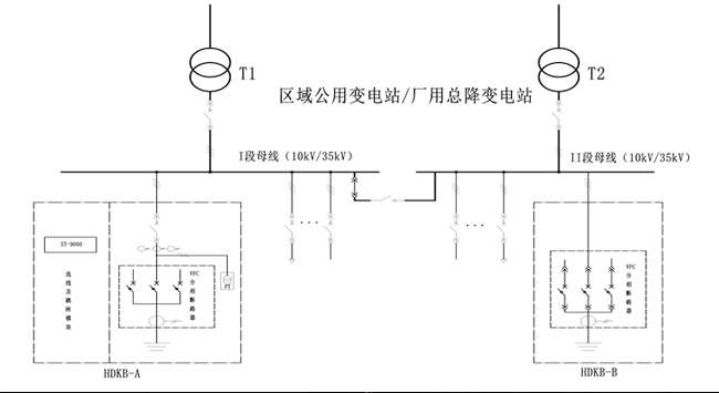 區(qū)域型變電站內(nèi)10kV~35kV母線段,中性點非有效接地系統(tǒng)。